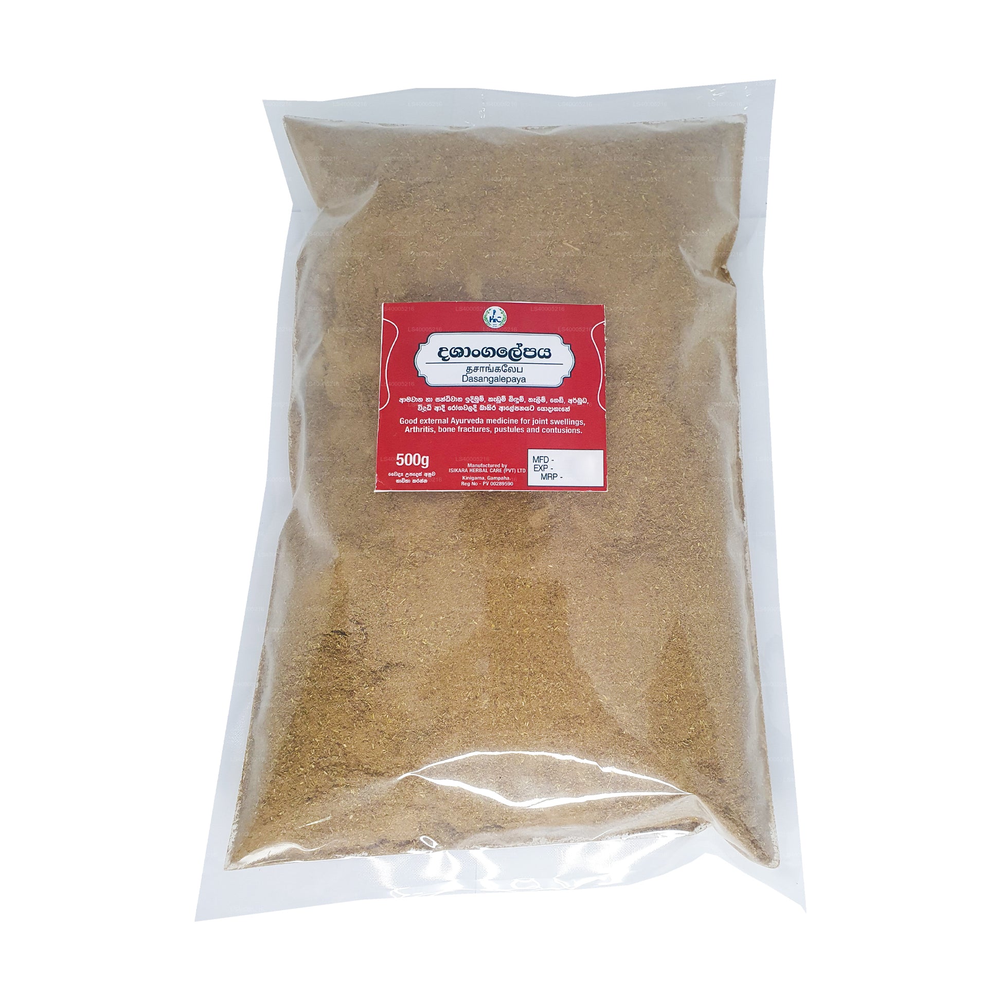 (SKU:LS4000A269)Isikara Dasangalepa churnaya,也被称为 Dashang Lepa Churna,是一种仅供外用使用的阿育吠陀草药膏。它主要用于治疗疱疹伤口、皮肤病、发烧和炎症。剂量足以局部使用或遵照医生的指示。这种草药混合了传统草药,这些草药在阿育吠陀中以其治疗特性而闻名