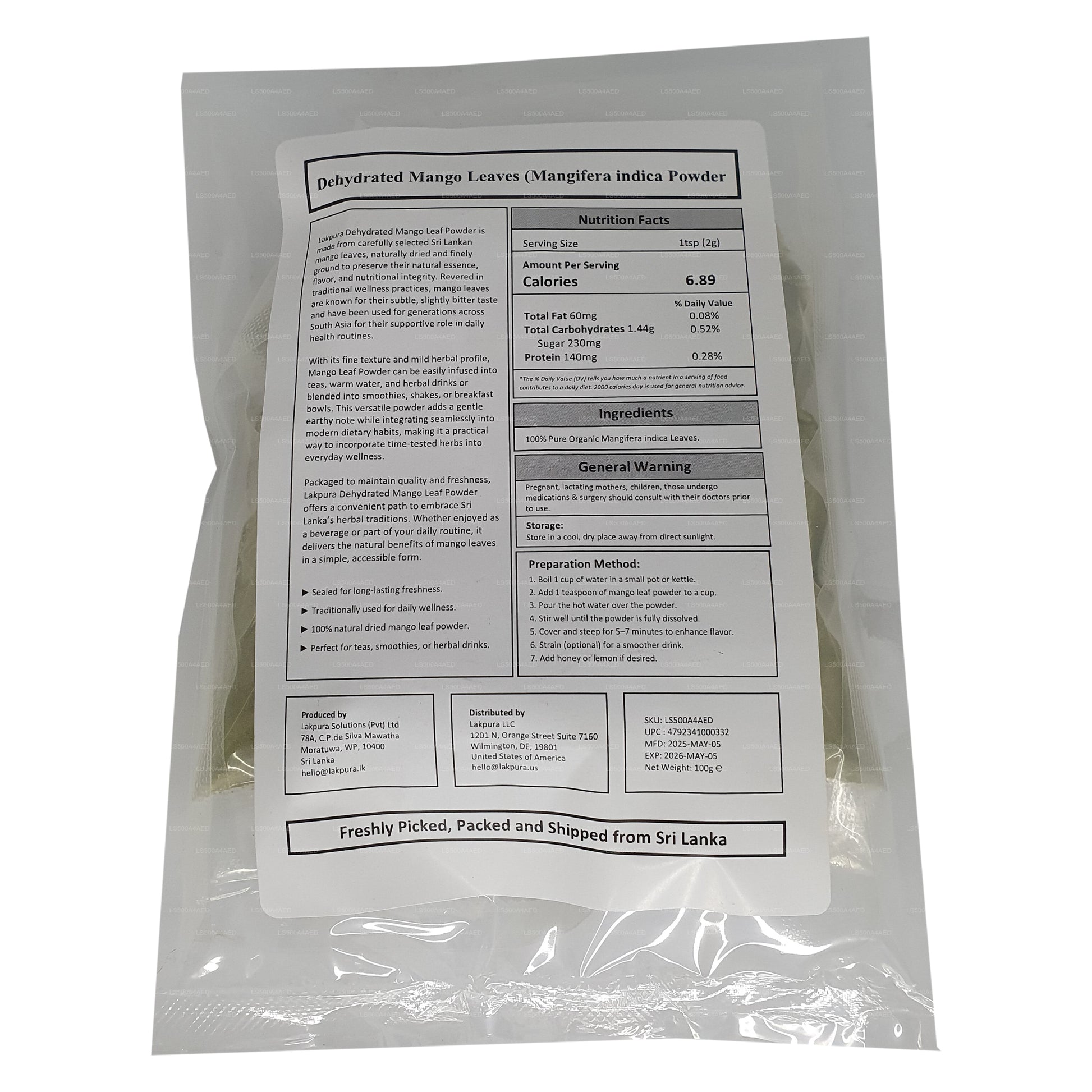 Lakpura Dehydrated Mango Leaf Powder