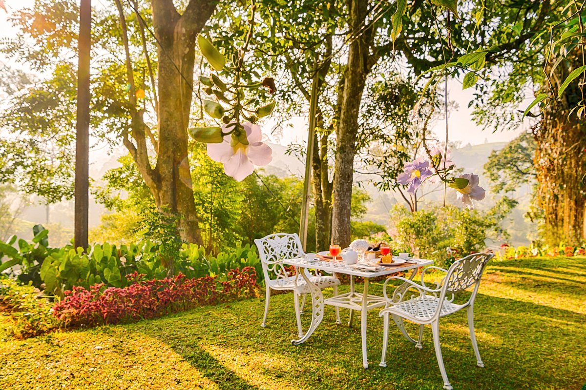- Garden Terrace: Outdoor seating overlooking manicured lawns, tea estates, and hillside scenery.