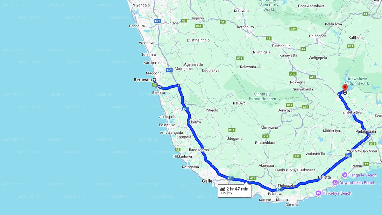 Beruwala City to Mattala (HRI) Airport Private Transfer