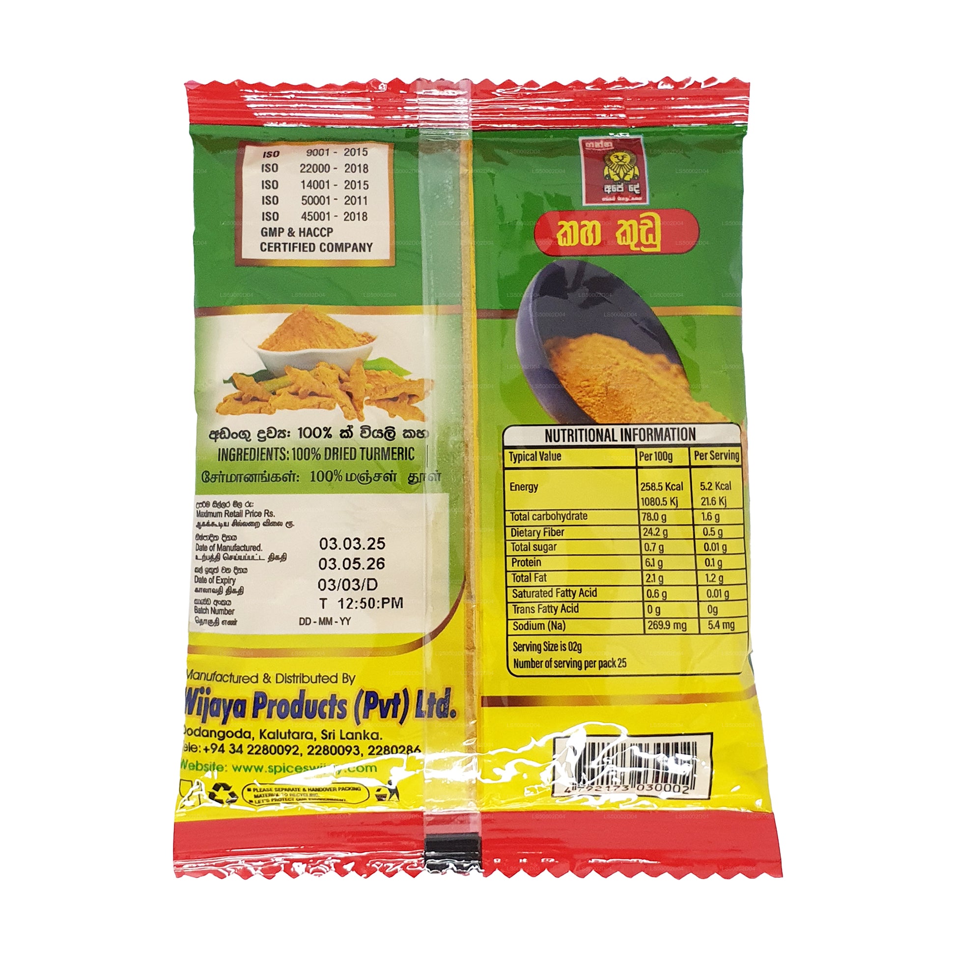 (SKU:LS5000C93C)使用姜黄根植物的高品质块茎制成。研磨是在严格的卫生条件下在专门为研磨姜黄块茎而设计的磨机中进行的。该产品采用层压袋卫生包装,可长时间保持其新鲜度。