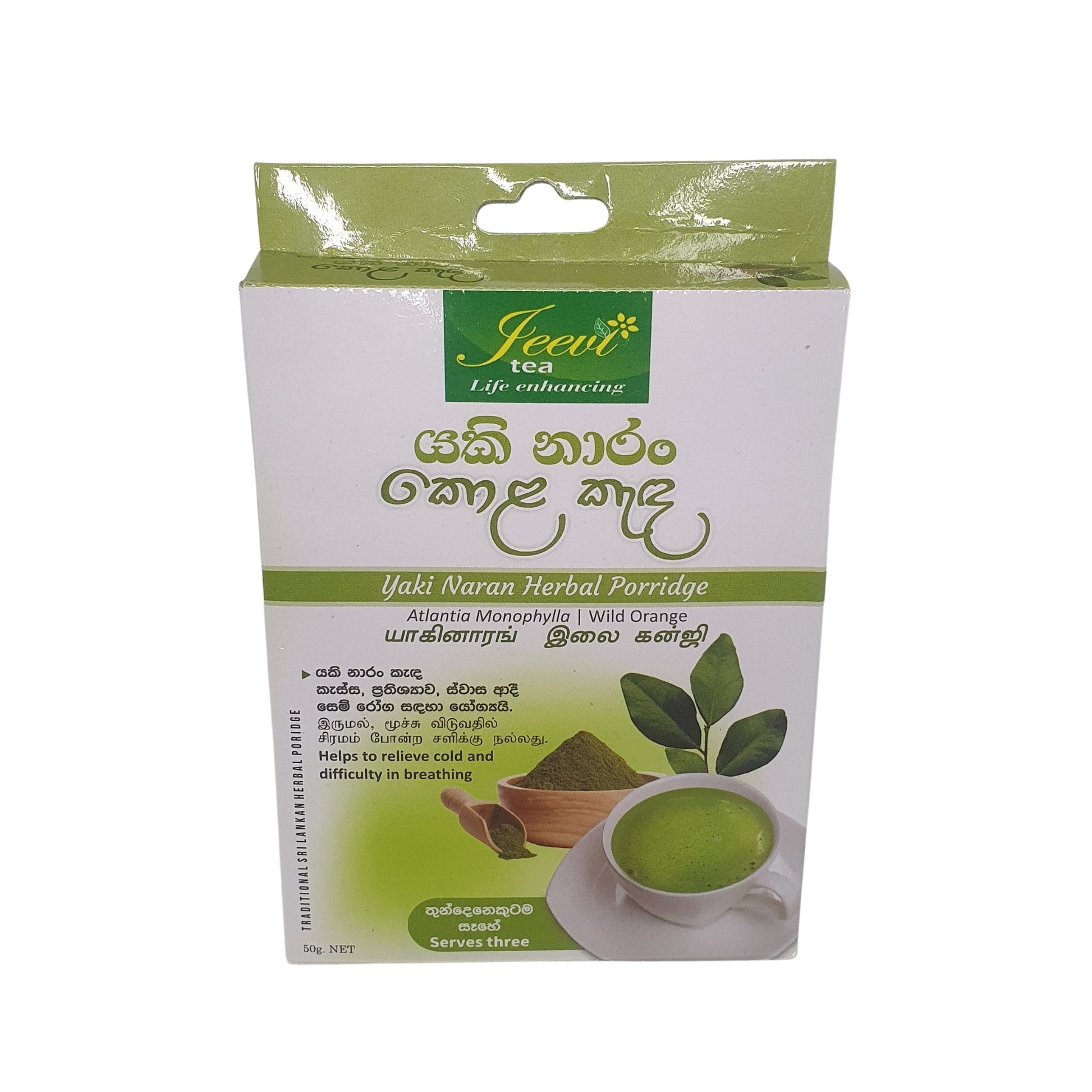 Jeevi Yaki Naran Kola Kenda (50g) 使用 Yaki Naran 叶子制作,并按照传统的斯里兰卡方法准备。这种传统配方在当地家庭中广泛使用,尤其因其天然的温暖和舒缓特性而受到喜爱。粥味道清淡、带有泥土香气,且制作简单,非常适合喜欢斯里兰卡传统草本饮品的人。以细致和真实的方式制作,它将乡村风格的家庭疗法精髓带入您的日常生活。